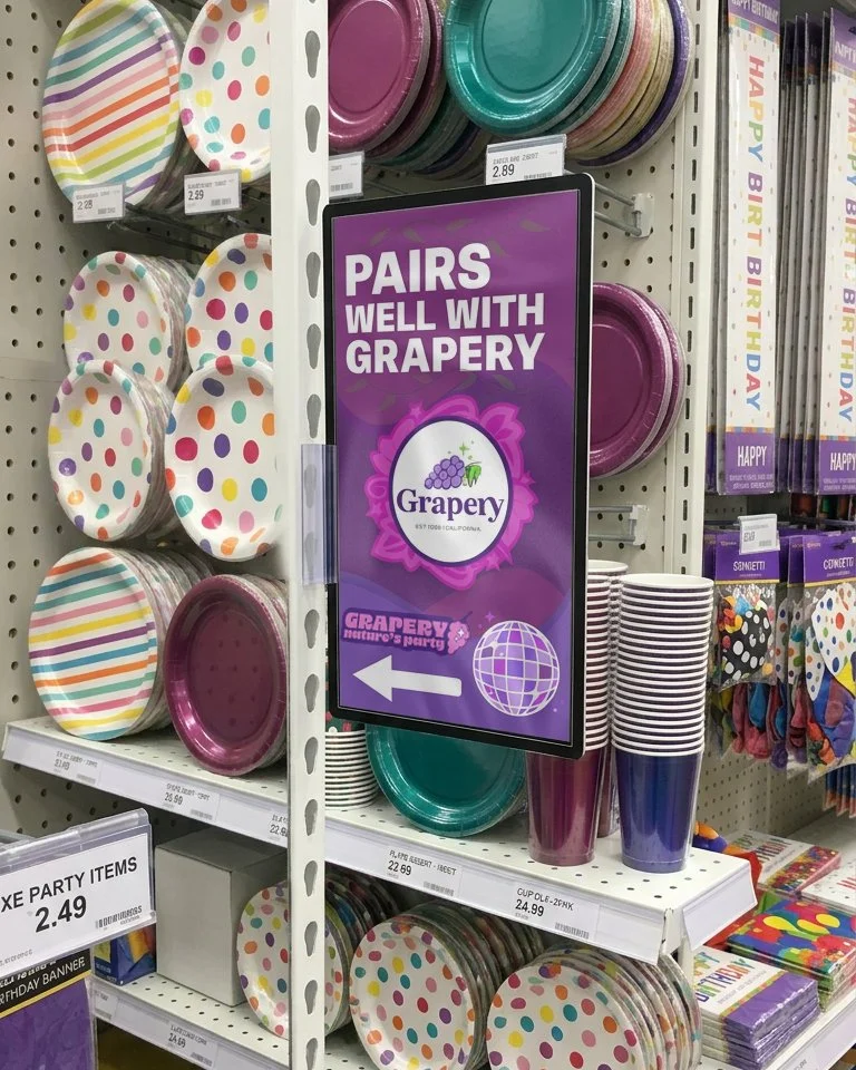 Even the party supply aisle has reminders that Grapery should be part of your planning.