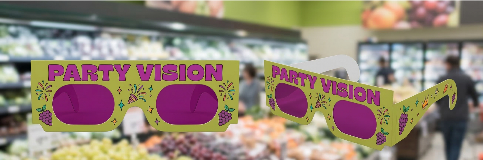 Every shopper is invited to see the produce aisle the way Grapery does with free Party Vision glasses, our version of rose-colored lenses.
