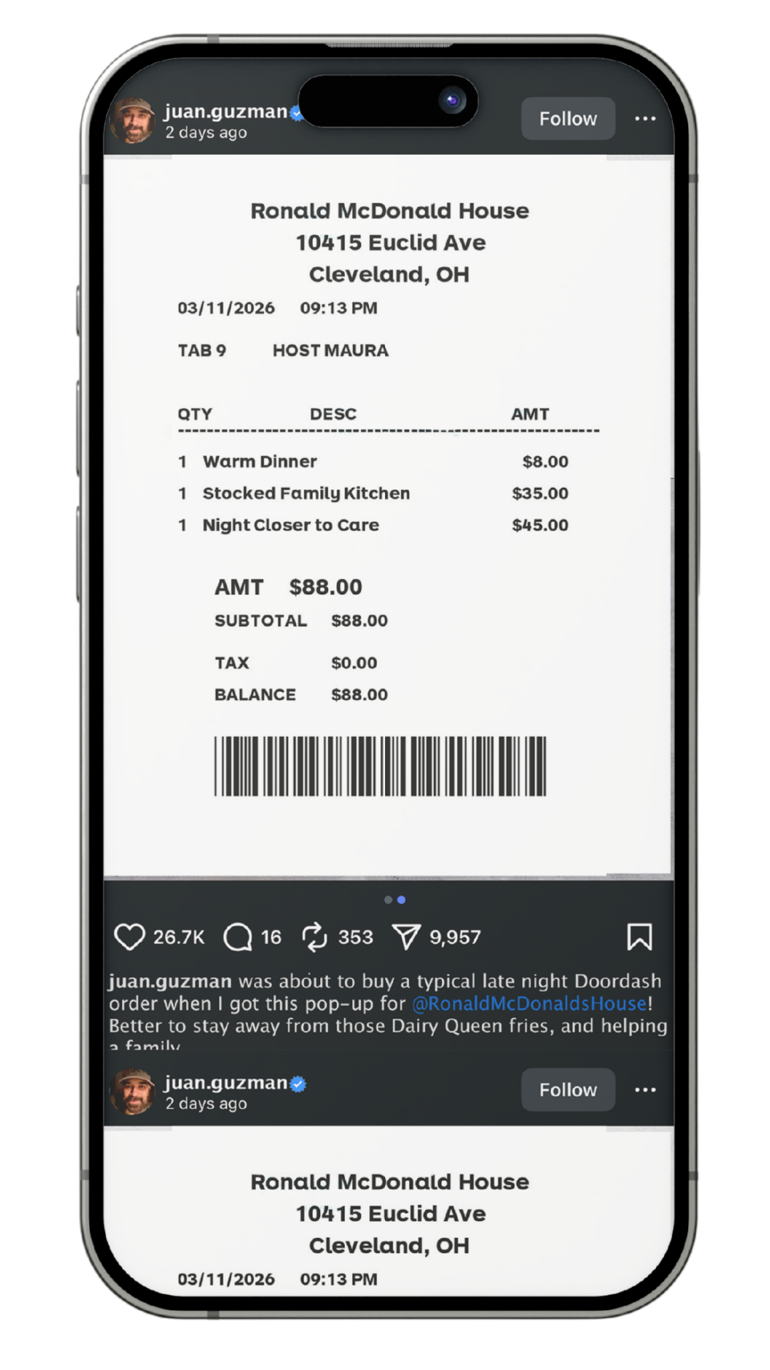 Between the hours when Gen Z and Millennials are most likely to impulse shop, Ronald McDonald House shows up with social-first content that reframes those purchases in real time.