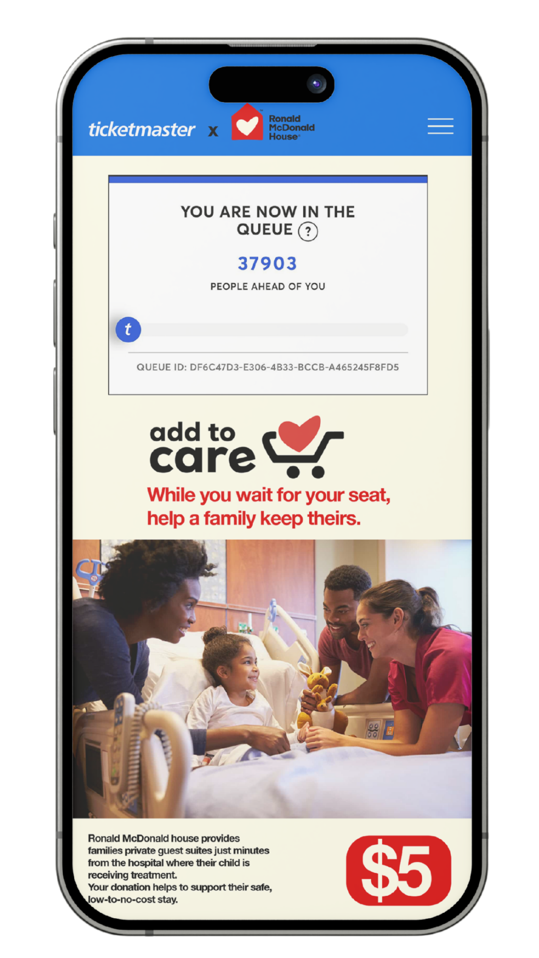 In digital waiting rooms for concerts, events, drops, or ticket queues, Ronald McDonald House turns “waiting” into a moment of perspective.