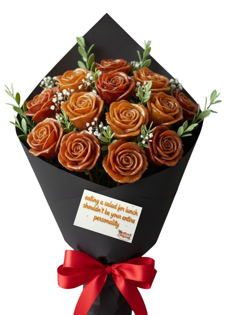 Bouquets of caramel candy roses will be available online for people to send to a friend (or frenemy) of their choice — equipped with the option to write your own unsolicited advice or choose a pre-written note.