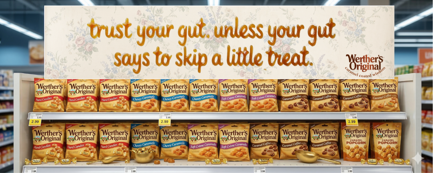 That’s why Werther’s is leaning into the persona of a wise, lovable (and maybe a little sassy) grandma that we can all learn something from.